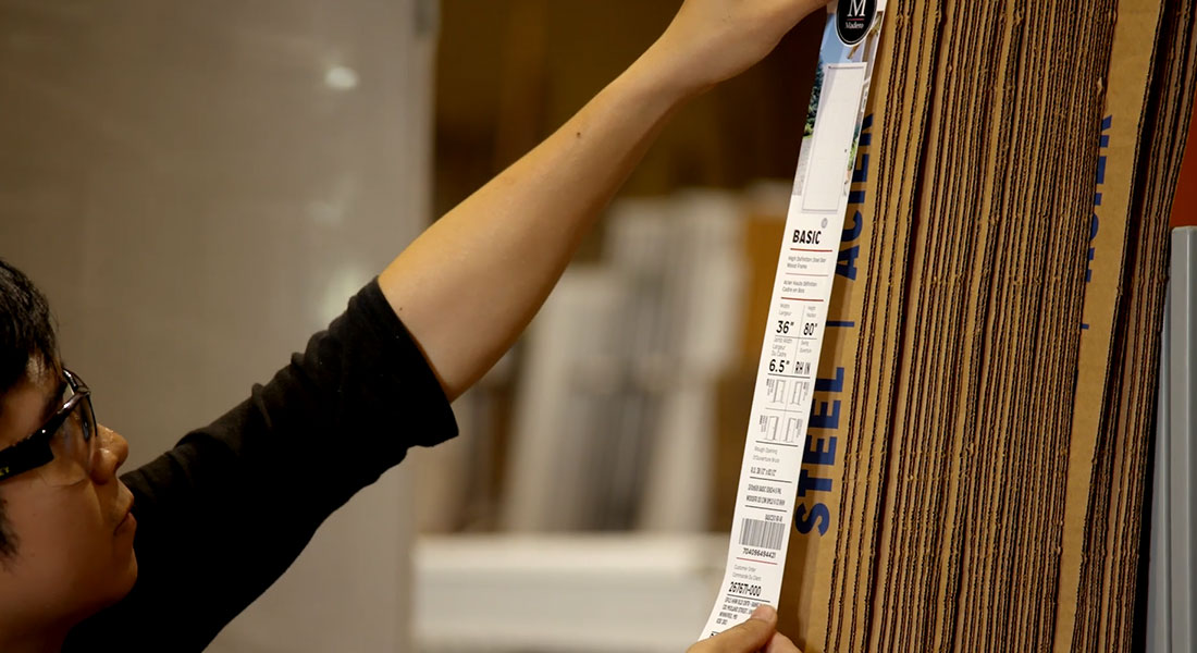 For doors sold at the retail level, West Four prints a 3×18 inch color label that includes variable data that’s pulled live from their system. The printing is automated, and prints right on the manufacturing line, so labels are conveniently applied as the product leaves the building. This process ensures all items are properly packaged without error, while not slowing down West Four’s shipping operations.